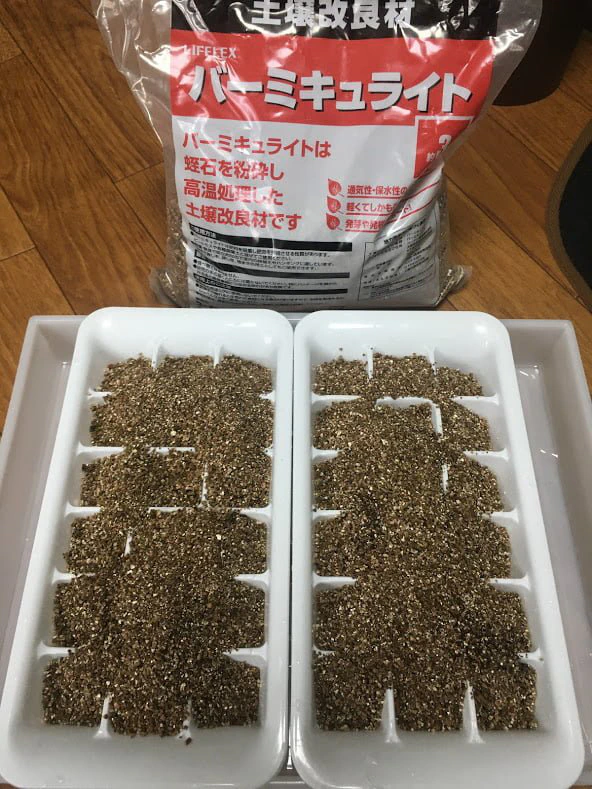 最後に、準備した製氷皿にバーミキュライトを入れれば完成です!ふわっと入れるのがコツです。