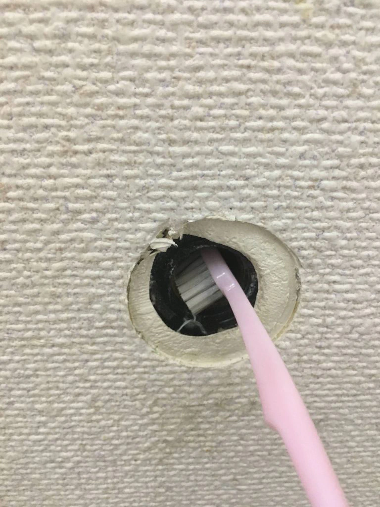 歯ブラシで古いシールテープを除去