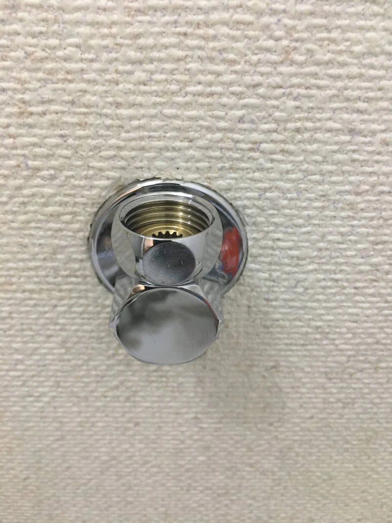 ハンドルを時計回りに回すと水が止まります。締めたら、室内の蛇口をひねって水が出ないことを確認しましょう。