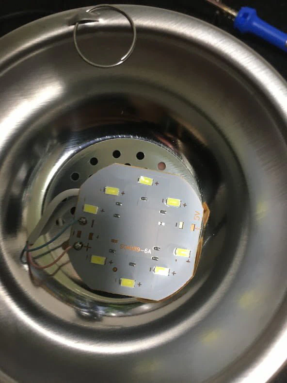 そこで作戦を変更し、LEDライト自体を一度分解し、配線をシェードに通してから再接続する方法を取りました。