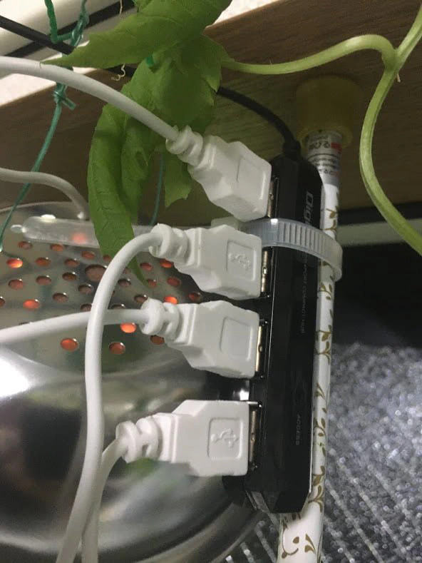 完成したLEDライトを、Raspberry Piに接続します。USBポートが足りない場合は、USBハブを使用すると便利です。