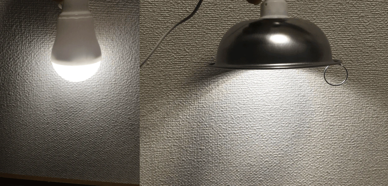 ランプシェードの有無で、どれくらい明るさが変わるのかを比較してみました。