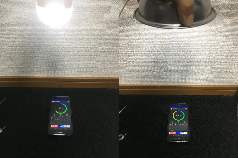 3. ランプシェードの効果を検証!明るさを比較