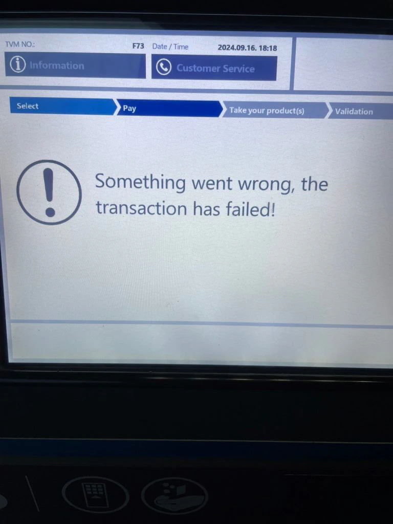 何度試してもクレジットカードの決済に失敗し、バスの切符が買えません。現金があれば購入できそうでしたが、空港内に戻ってチケットカウンターを見つけ、そこでようやくクレジットカードで購入できました。