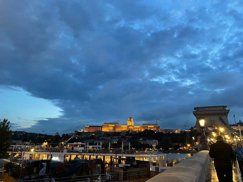鎖橋からは、ライトアップされたブダ城が美しく輝き、多くの観光客がその絶景を写真に収めていました。