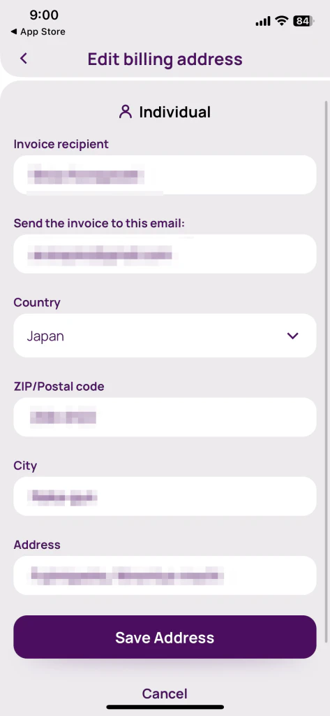 Googleアカウント連携ができたので、そちらで登録を進めましたが、そのまま連携すると日本語の住所が反映されてしまうため、英語表記に修正する必要がありました。