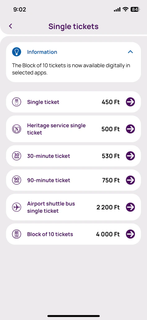 シングルチケットは450Ft(約184円)と非常に安価です!