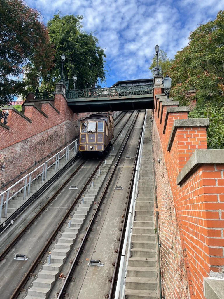 ホテルからブダ城までは、ドナウ川沿いの美しい景色を楽しみながら散歩しました。丘の上まではケーブルカーでもアクセス可能ですが、私たちは街並みを満喫しながら歩いて向かいました。