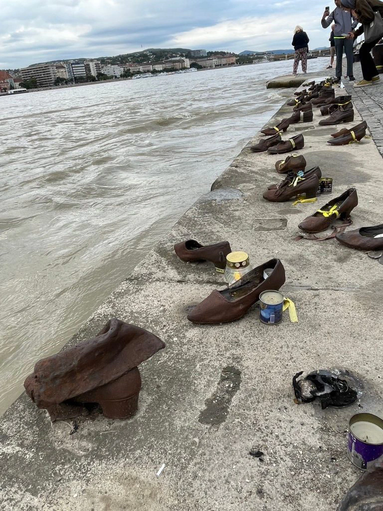 国会議事堂の裏手からドナウ川沿いを歩くと、心に響くモニュメント「ドナウ川遊歩道の靴」にたどり着きます。