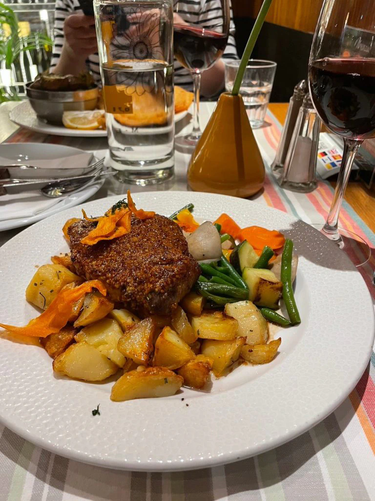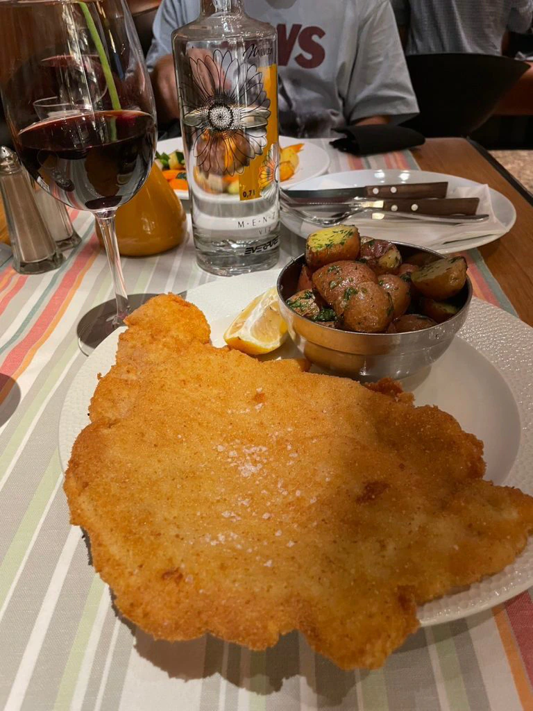 マンガリッツァ豚の他にも、鴨レバーペーストやシュニッツェルなど3品を注文し、2人ともお腹がはちきれんばかりになりました。