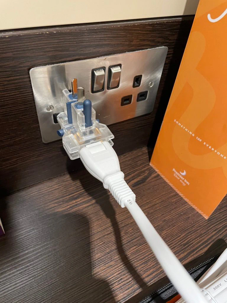 ここで、前回の記事でご紹介した「海外用変換プラグ」が初登場!翌日からのロンドン観光に備え、スマートフォンやカメラなどのデバイスを充電しました。空港直結の便利さと、夜遅くの到着でも安心感のあるPremier Inn Terminal 4で、初日の長旅の疲れを癒すことができました。