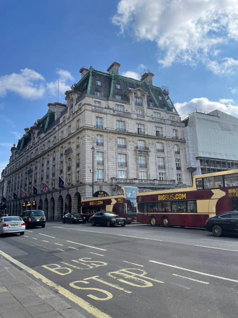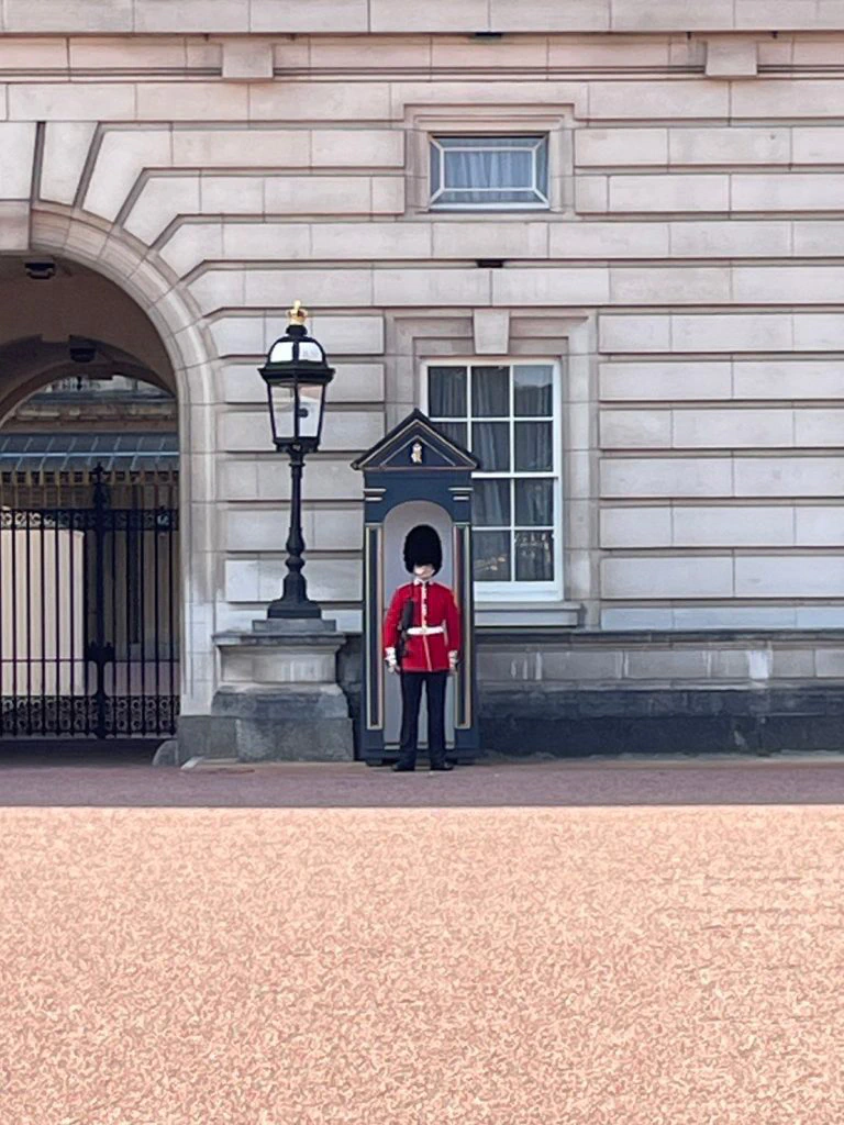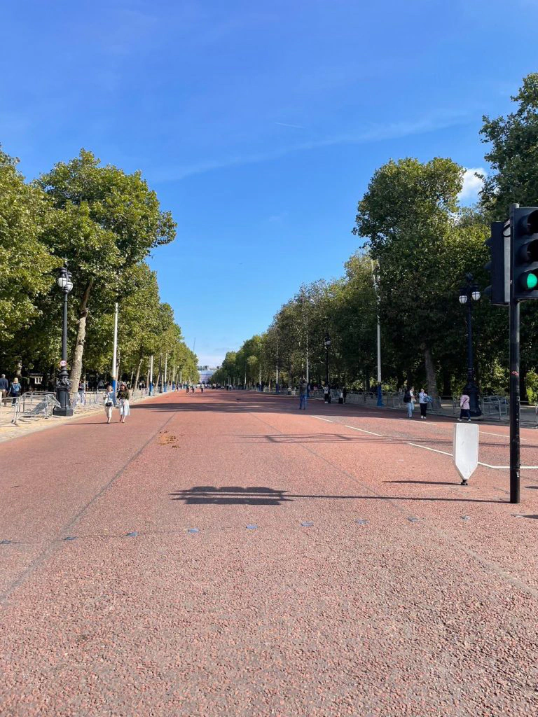 ロンドン観光のハイライトの一つ、バッキンガム宮殿の衛兵交代式を見学するため、エリザベスラインでボンド・ストリート駅まで行き、そこから地下鉄を乗り継ぎ宮殿近くの駅へ向かいました。レトロな地下鉄車両に揺られ、地上に出ると一変、絵画のようなヨーロッパらしい街並みが広がり、一気に旅情が高まります。
