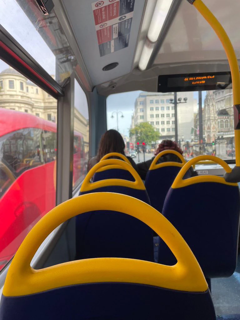 ビッグベンから大英博物館へは、ロンドンの名物である二階建てバスで向かいました。もちろん2階席に乗車し、ロンドンの美しい街並みを眺めながら移動。Googleマップで示されたバスの番号を確認して乗るだけなので、迷うことなく目的地に到着できます。