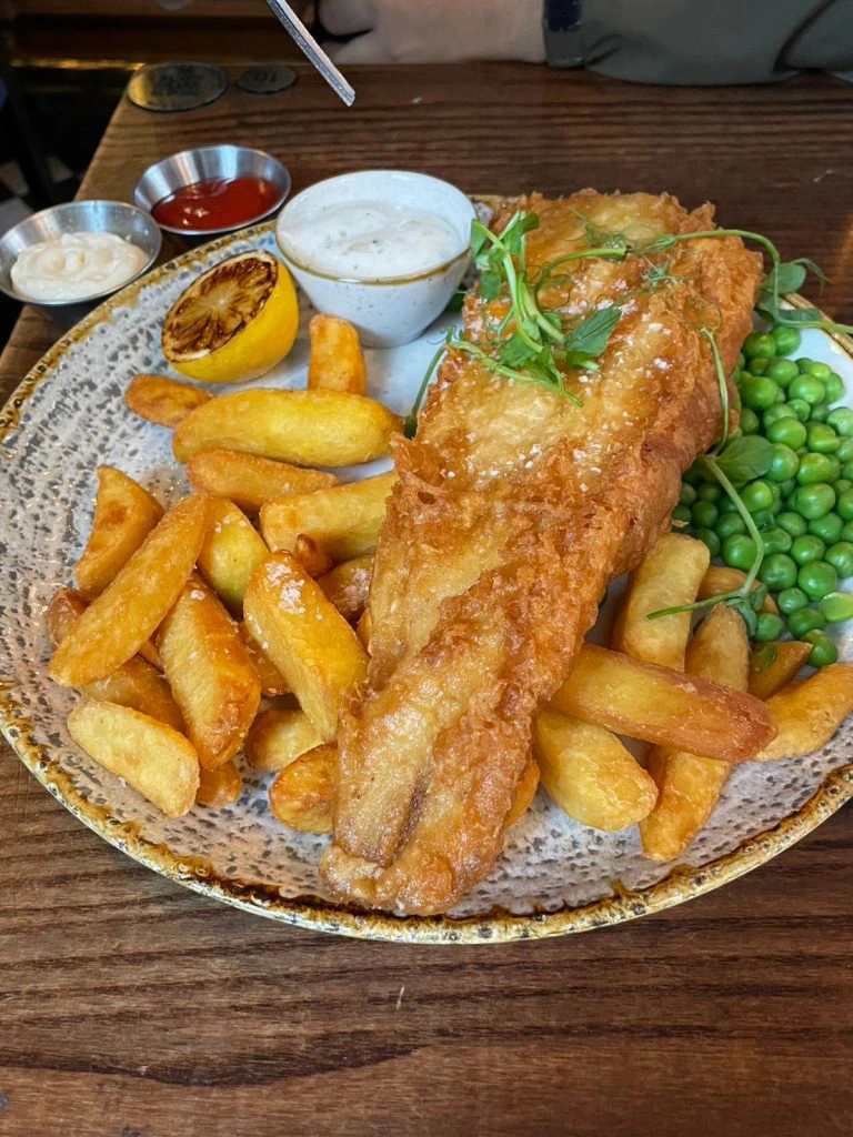 2人で一皿でも十分なボリュームがあり、揚げたてサクサクのフィッシュは脂っこくなく、ビールとの相性も抜群でした。合計32.65ポンド(約6,217円)と、やはりロンドンの物価を実感する価格ですが、本場の味を体験できて大満足です。