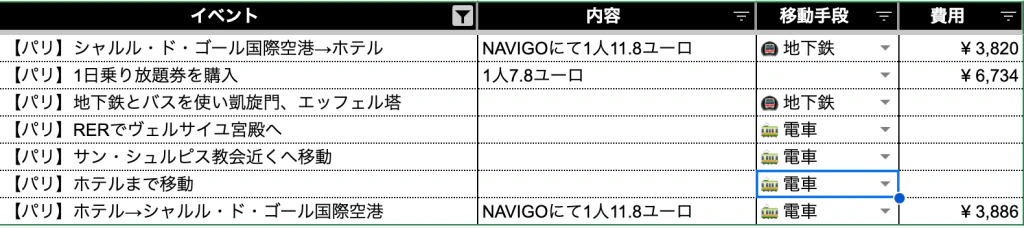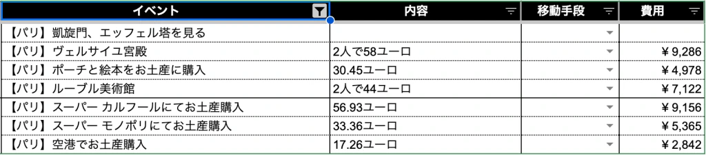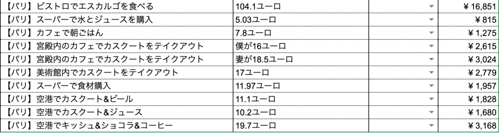 最終日にお土産を買い込んだため、パリでの観光費用が最も高くなりました。