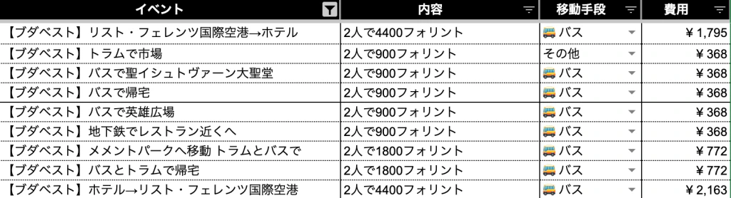これだけ乗っても2人でこの価格は、ブダペストの公共交通機関がいかに安価であるかを示しています。