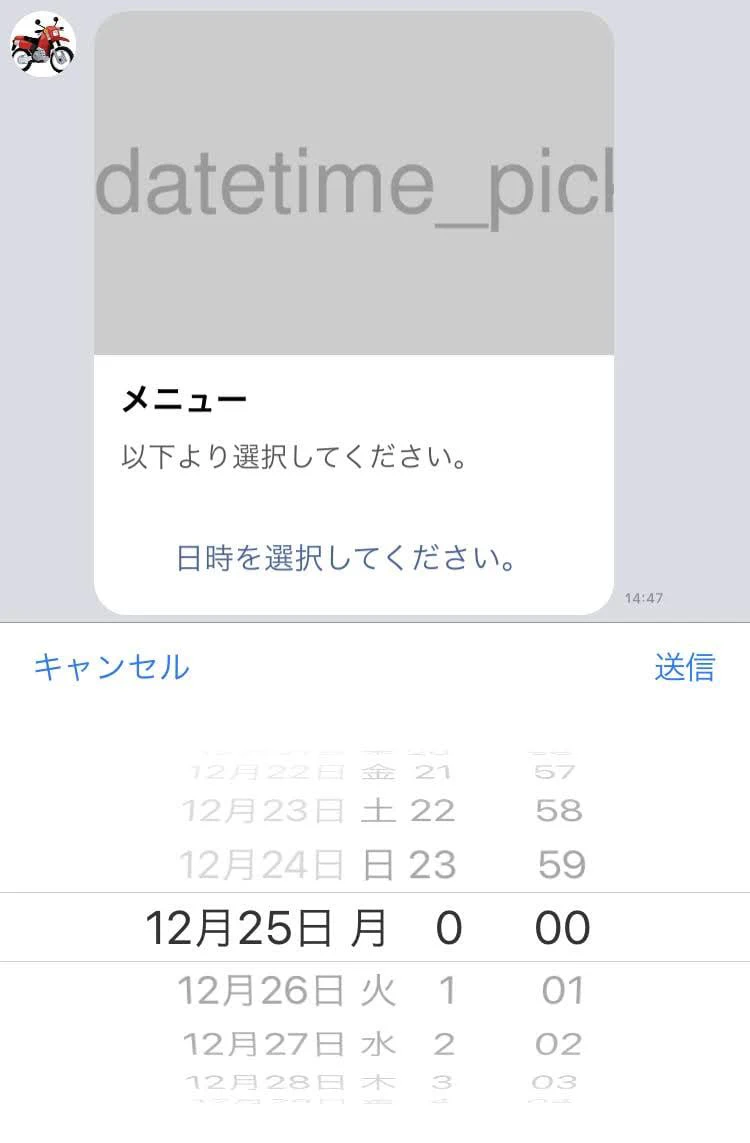 日時選択アクションは、ユーザーにカレンダーUIを表示し、日付や時刻、またはその両方を選択させる機能です。選択された日時はポストバックイベントとしてサーバーに送信されます。
