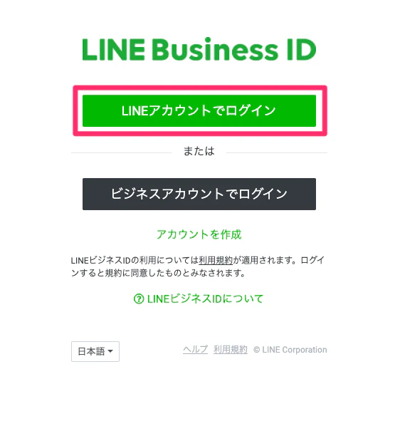 最初に、LINEの開発者向けポータルサイト『LINE Developers』にアクセスし、ご自身のLINEアカウントでログインします。