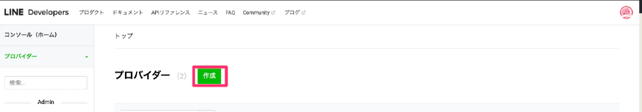 ログイン後、BOTやサービスを提供する組織として「プロバイダー」を作成します。