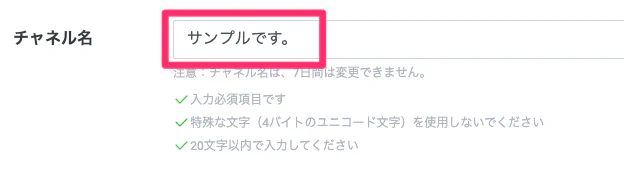 チャンネル作成画面で、以下の情報を入力・選択します。