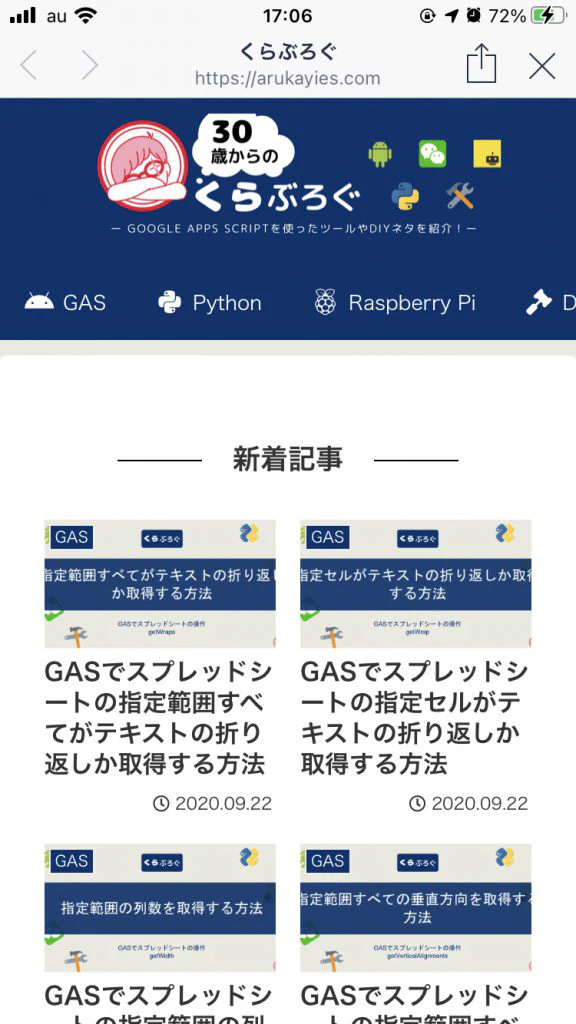 「TOPを開く」ボタンをタップすると、指定したURL(この例ではブログのトップページ)が開きます。