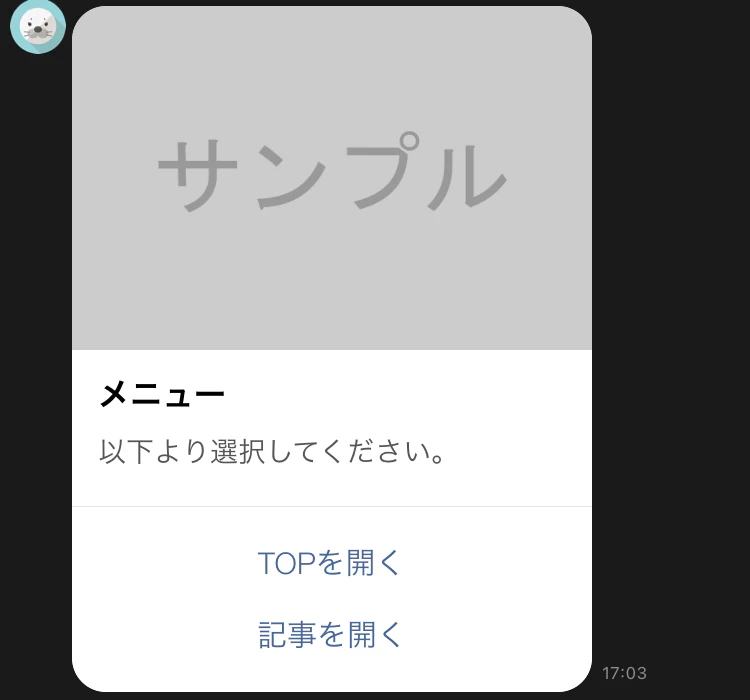 ボタンテンプレートは、画像、タイトル、説明文、そして複数のアクションボタンを一つのまとまりとして送信できるメッセージ形式です。ユーザーに対して視覚的に分かりやすく、次のアクションを促したい場合に非常に効果的です。