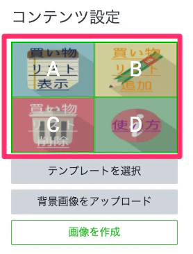 『画像を作成』ボタンから、各ボタンに対応する画像をアップロードします。