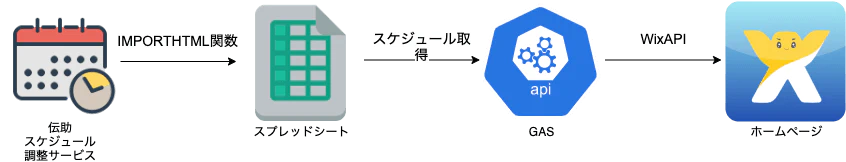 - Google Apps Script (GAS): スプレッドシートの情報を読み取り、WixのAPIへ送信します。