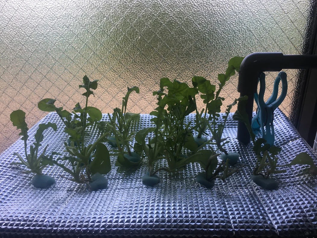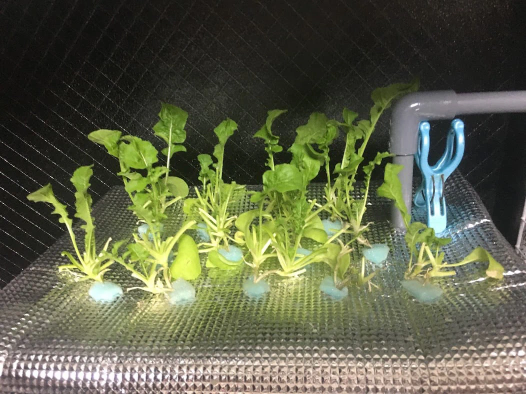 水耕栽培で育てているルッコラの観察日記43日目。大きく成長し、ルッコラ特有のゴマのような強い香りが楽しめるようになった様子を写真と共に報告します。