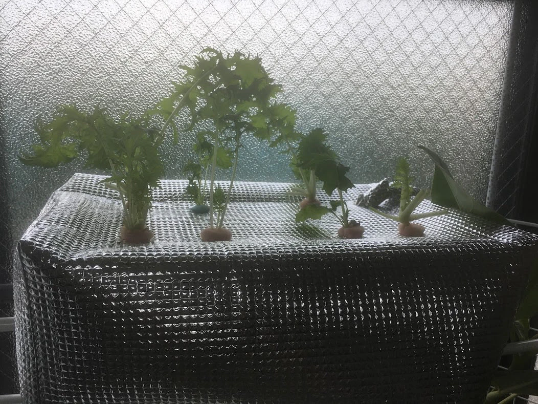 水耕栽培で育てているミズナの観察日記47日目。ついに初収穫を迎え、新鮮なミズナをサラダで美味しくいただいた様子を写真と共にレポートします。![]()
