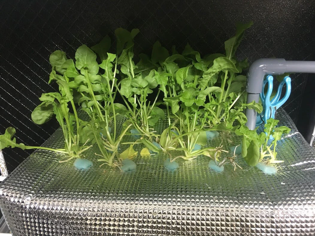 水耕栽培で育てているルッコラの観察日記58日目。ほとんどのルッコラを収穫し、美味しくサラダでいただいた様子を写真と共に報告します。成長の記録。