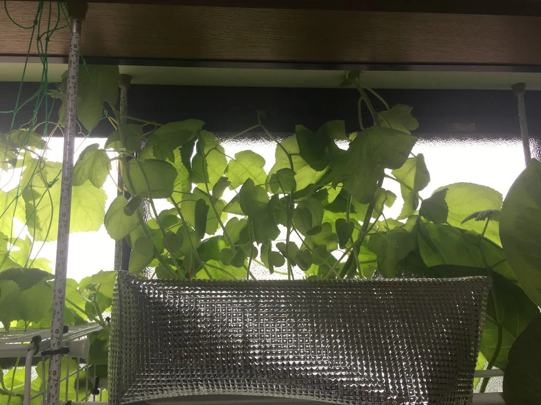 水耕栽培装置に植え替えたゴーヤ